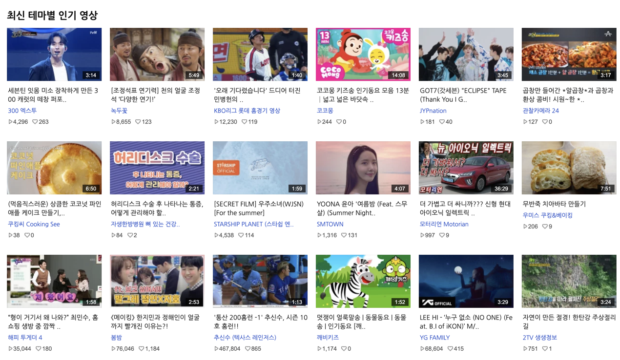 이러한 차이로 네이버 TV는 방송국 콘텐츠 조회수는 물론 일반인 크리에이터가 제작한 영상은 조회수가 처참한 수준이다. 노출이 안되니 조회수가 안올라가고, 조회수가 안 올라가니 사용자 기반 관심영상을 노출시킬 데이터가 부족하고, 부족한 데이터 때문에 방송국 클립만 노출되고... 이렇게 악순환이 반복되는 것이다.