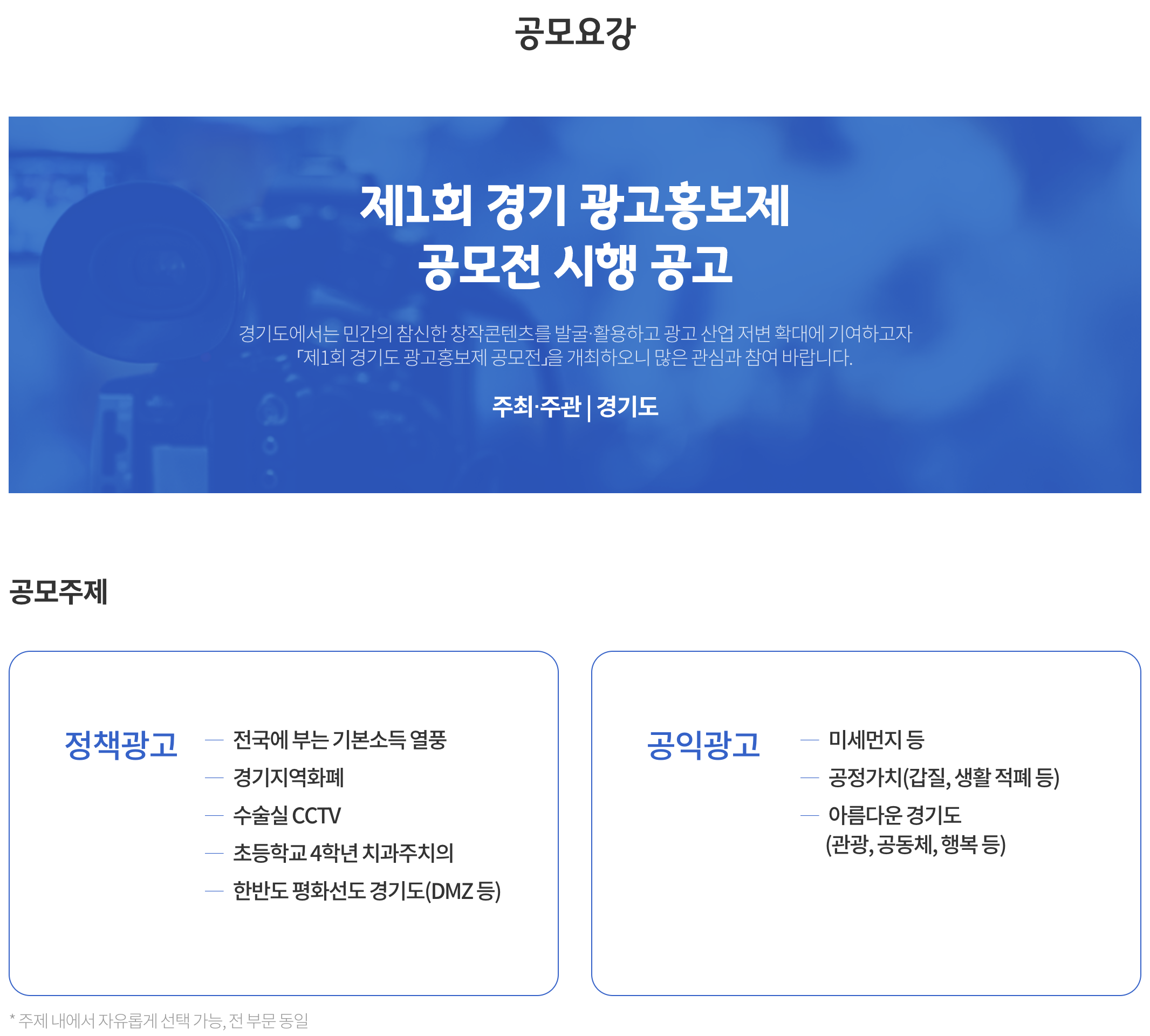 누구나 참여 가능한 공모전인 경기도 광고 홍보제가 지금 진행되고 있습니다.