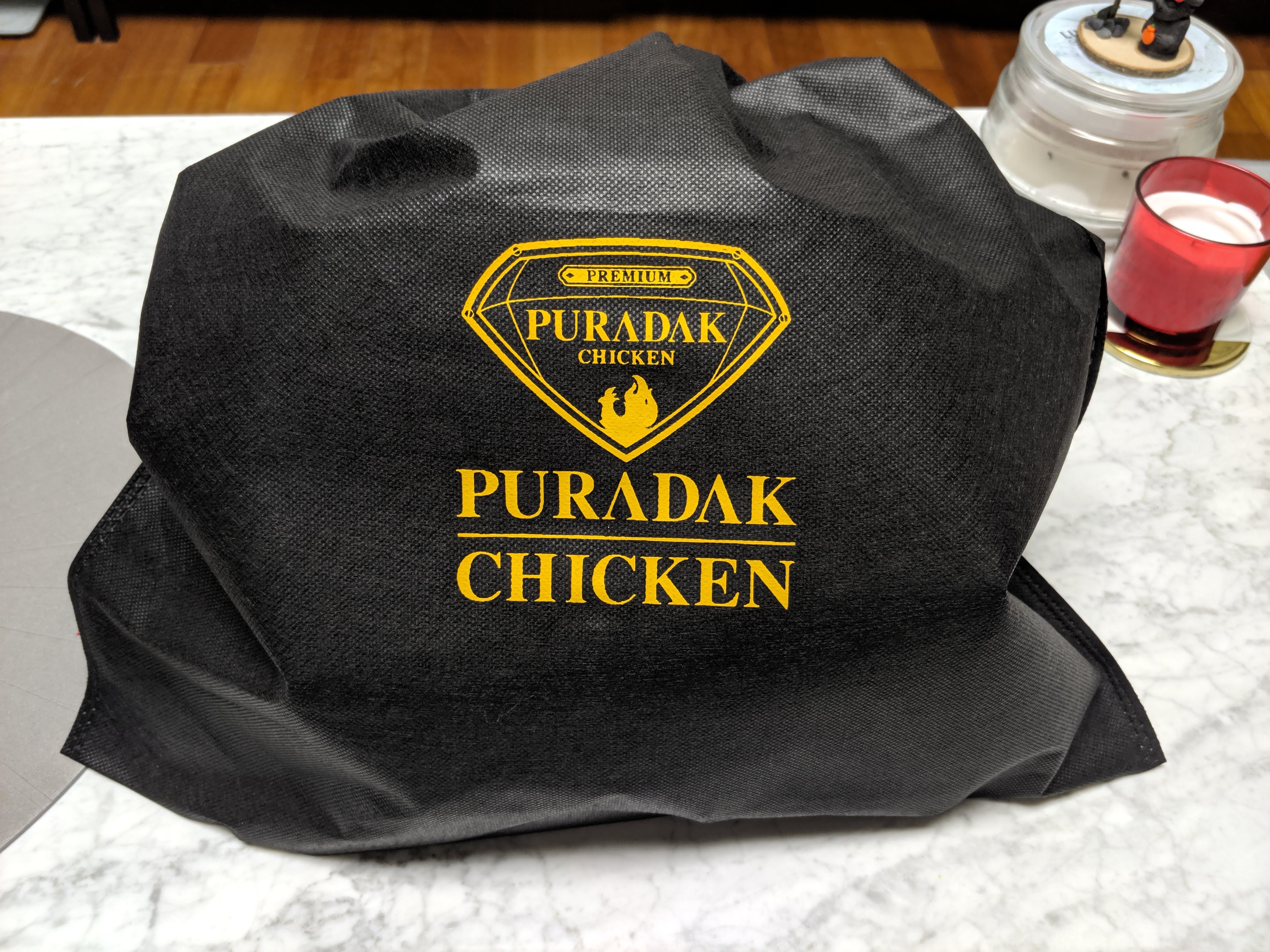 브랜드 이름이나 광고에서 느껴지듯 명품 치킨을 표방하는 푸라닭 치킨. 포장부터 눈길을 끕니다.