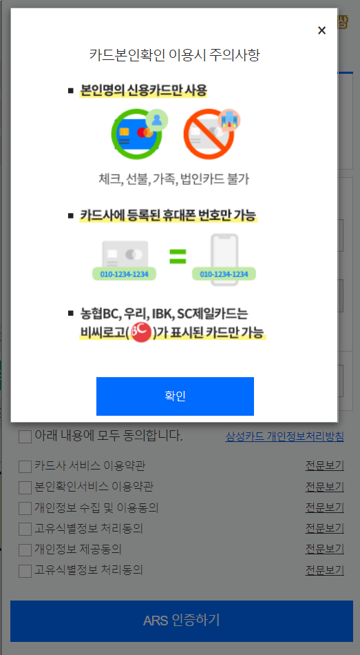 ARS 전화에 카드 비밀번호 앞 2자리를 누르면