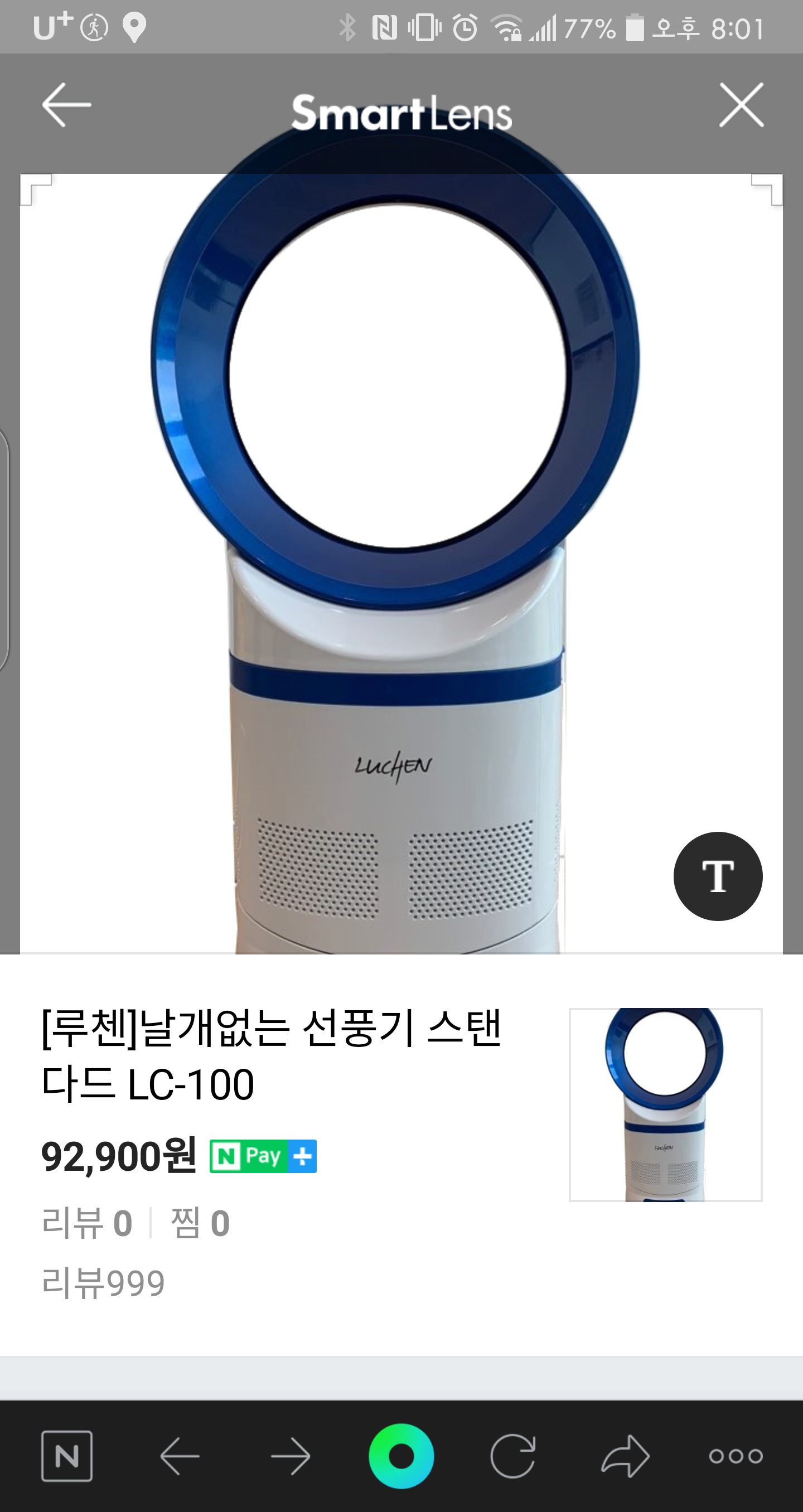 네이버 스마트렌즈가 어떤 상품인지 알려주네요.