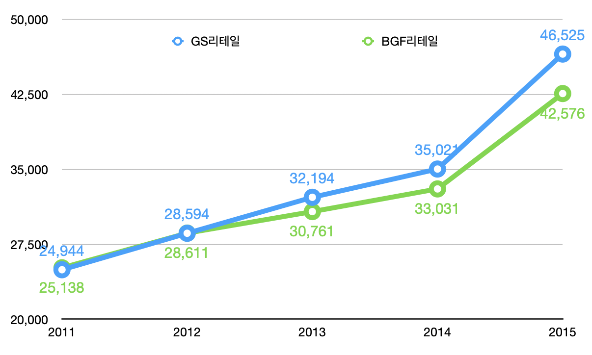 각각 전국 매장 1만 3천여 개에 달하는 가운데