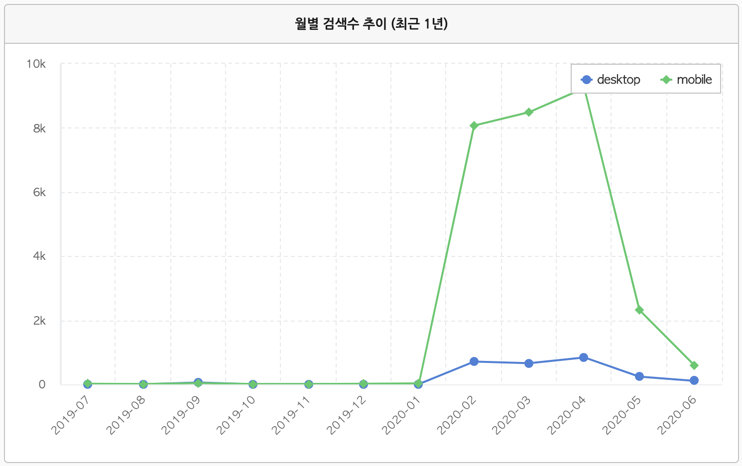6개월 최고점을 찍은 이후 지난달 검색량은